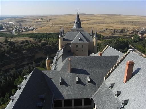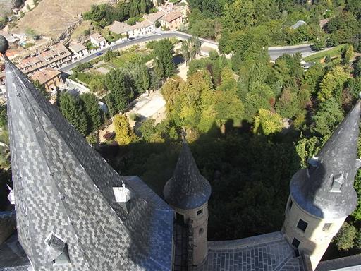 セゴビア市街に戻る途中、見上げると頭上にアルカサルが見える。