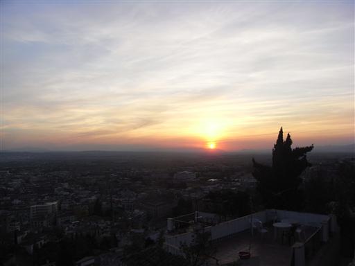 グラナダ市街の向こう側に夕日が落ちる。