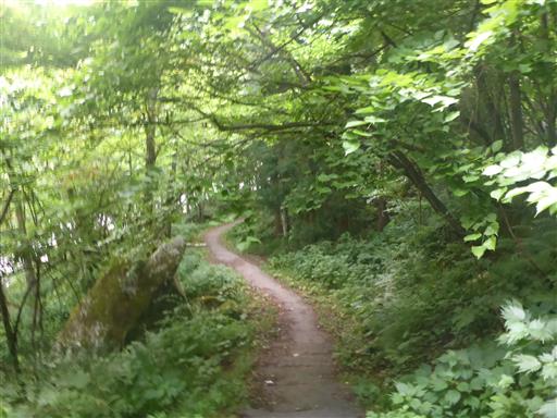 駐車場の奥から遊歩道が整備されており、ほとんど車道を歩く必要はない。
