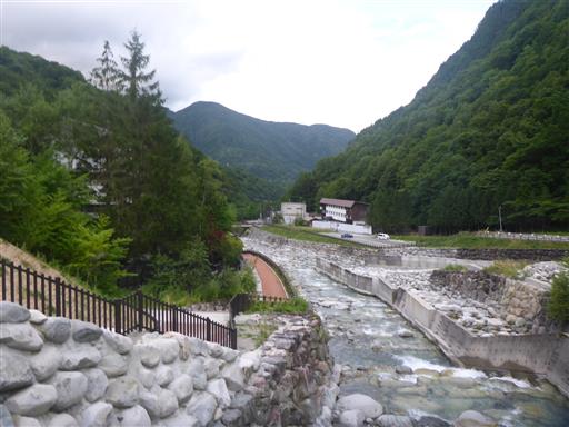 蒲田川に架かる橋を渡って登山開始。