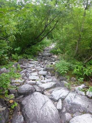 綺麗に石が敷き詰められており、傾斜も緩く一定で、非常に登りやすい。