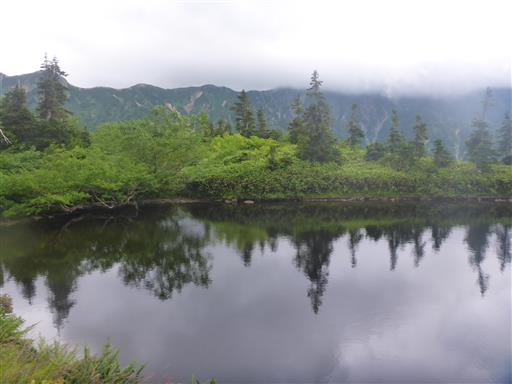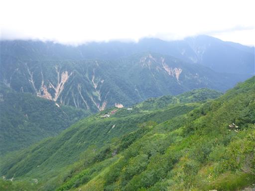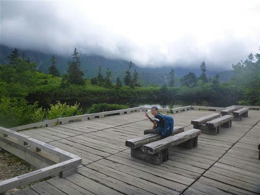 標高の高いところは雲に覆われていて、残念ながら槍ヶ岳は見えない。