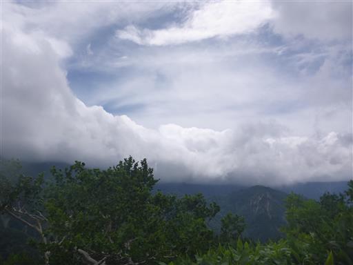 青空も見えているが、尾根には厚い雲がかかっている。