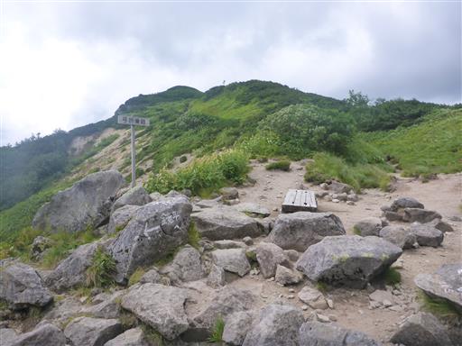 弓折乗越に到着。ここは笠ヶ岳への登山道との分岐点だ。
