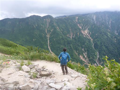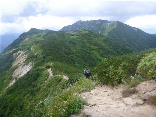 天候次第では鏡平山荘泊も考えたが、雨も風もないので予定通り先に進む。