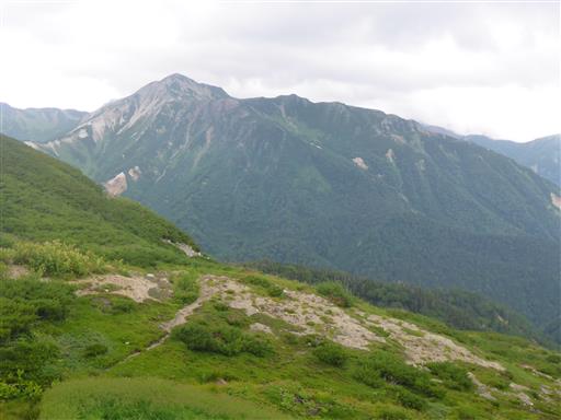 鷲羽岳にかかっていた雲が取れて姿を現す。存在感のある格好良い山だ。