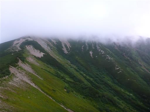 ときどき雲が消えて、山頂方面が姿を現す。