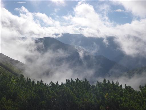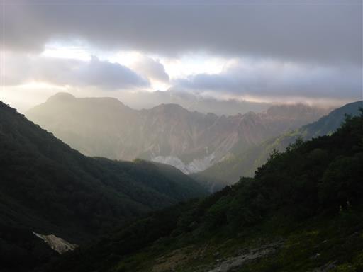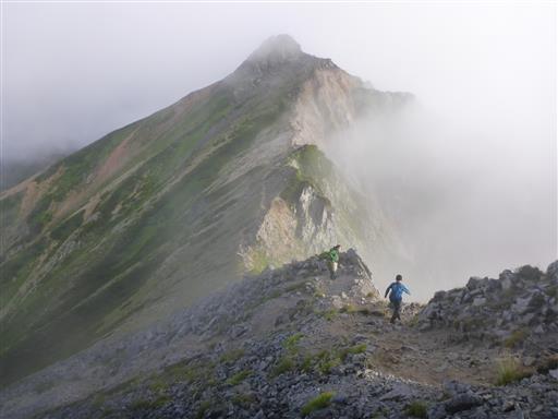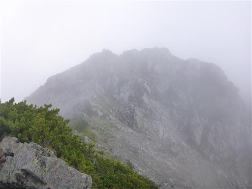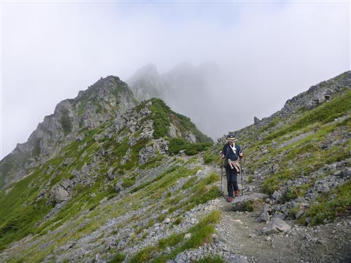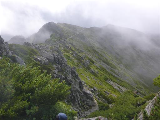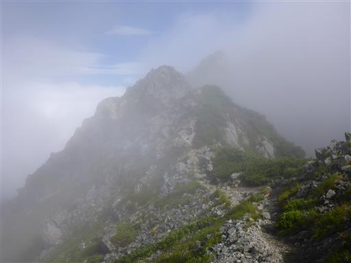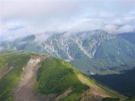 雲がだいぶ上がって、大天井岳の姿が見えている。