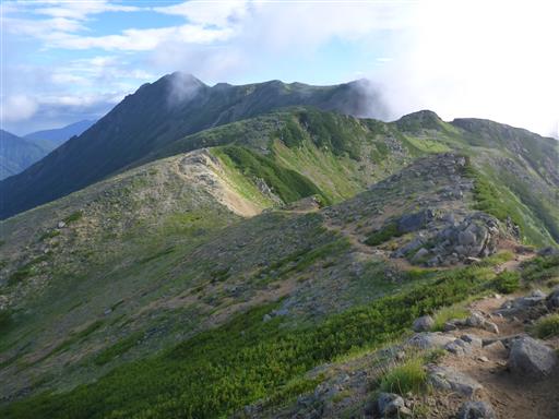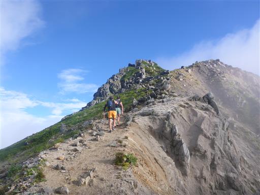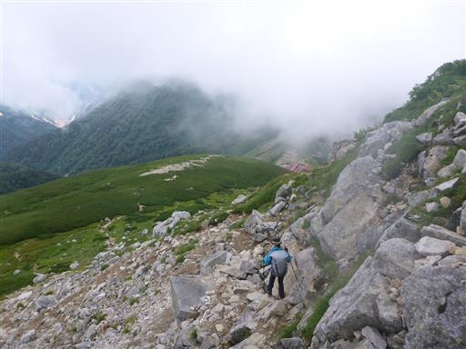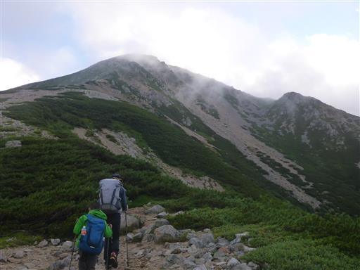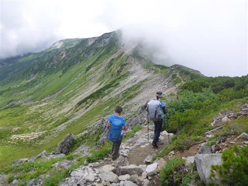 すぐに下山にかかり、次なる目的地の水晶岳を目指す。