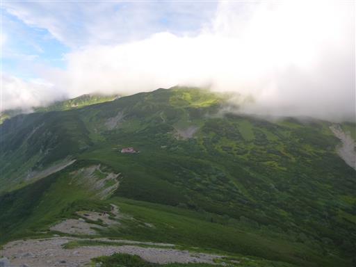 眼下に双六小屋が見えてきた。あと僅かだ。