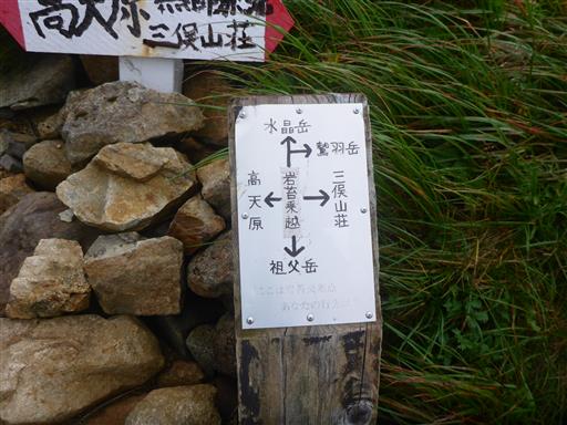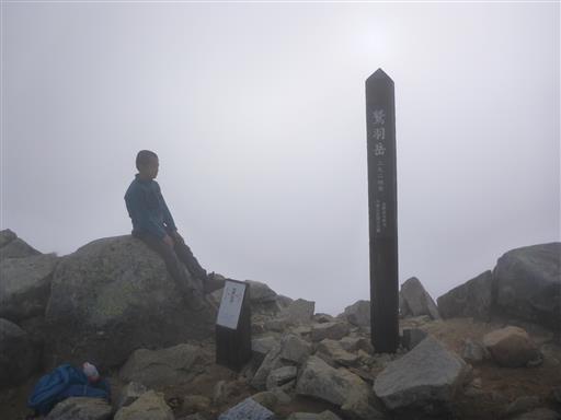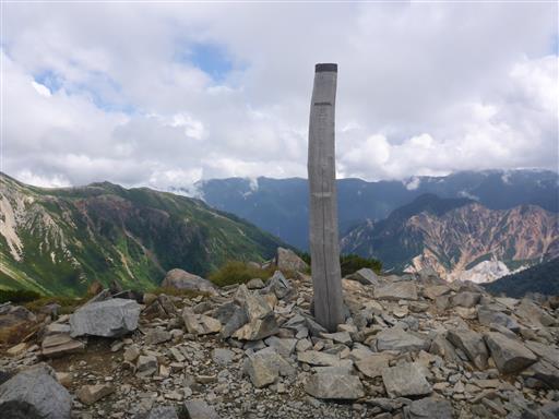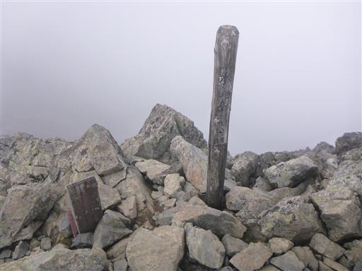 北アルプスの最奥に聳える名峰の割には、山頂標識はずいぶんとお粗末だ。