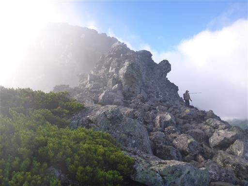 山頂直下は岩がちな地形だ。