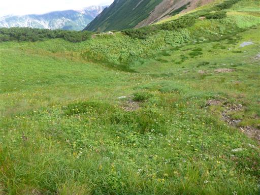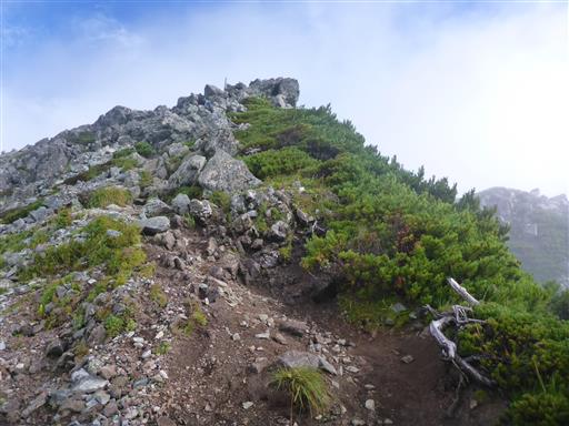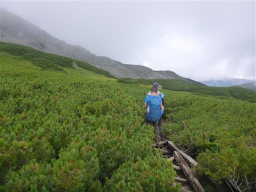 この辺りは背の低いハイマツが広がっている。