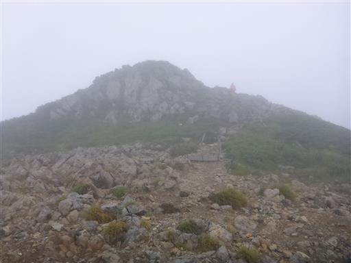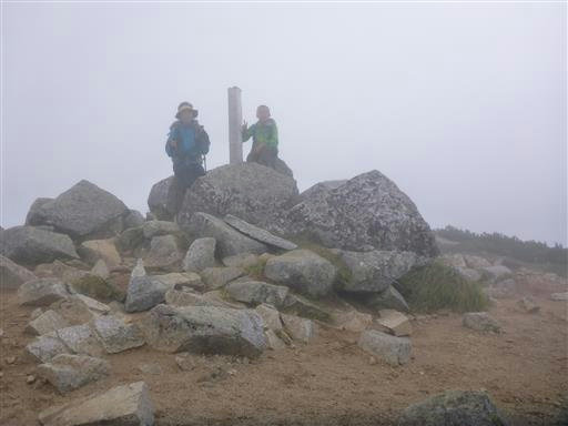山行3日目にして初めてのピークだ。残念ながら展望は全くない。