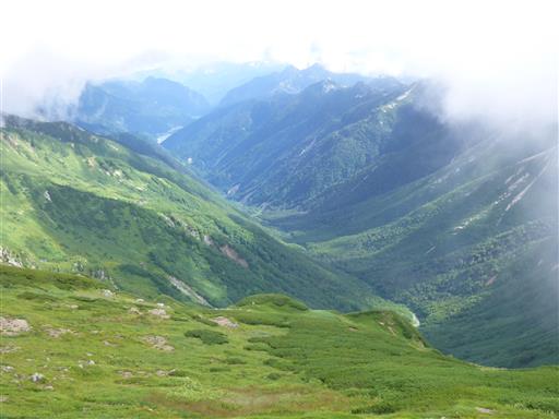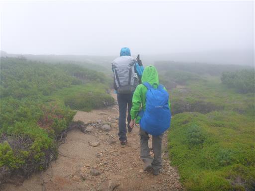 朝食を取って出発。残念ながら、すでに鷲羽岳は雲の中だ。