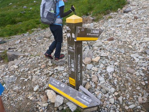 三俣峠に到着。往路と同じく巻道を行く手もあるが、