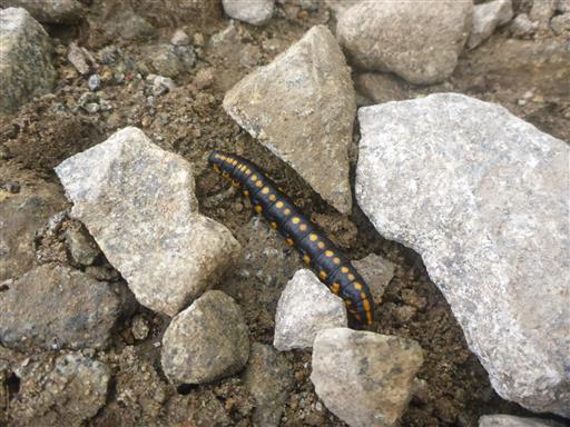 足元に芋虫を発見。調べたころ、ミヤマセダカモクメの幼虫のようだ。