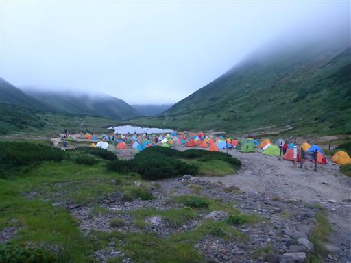 テント場はいっぱい、双六小屋も恐らく満室で大賑わいだ。