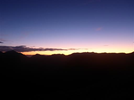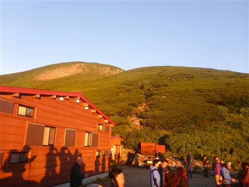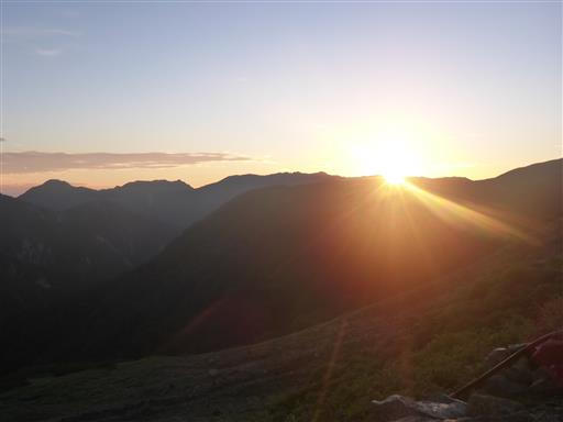 双六小屋の東には常念山脈が横たわっているので、日の出は遅い。