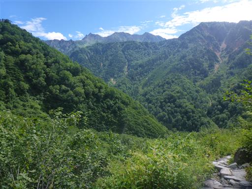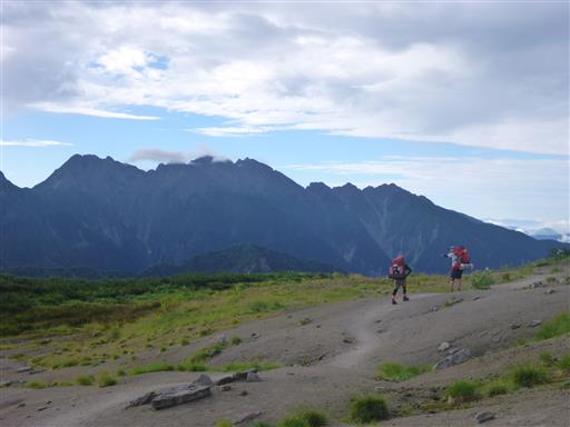 シシウドヶ原からは、蒲田川の向こうに焼岳と乗鞍岳が見えている。
