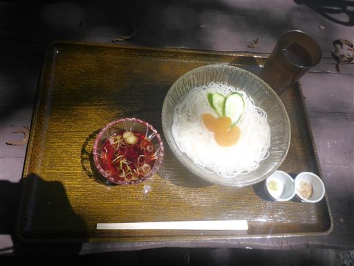 ここで昼食にそうめんを食べることにする。色合いがとても美しい。