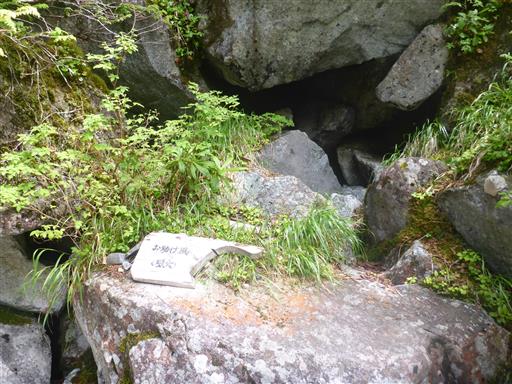 風穴。この辺りは所々に岩穴があり、冷気が出ていて涼しい。