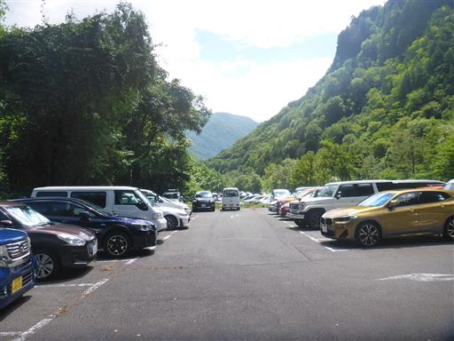 新穂高市営第3駐車場に戻ってくる。驚いたことに広大な駐車場はほぼ満車。