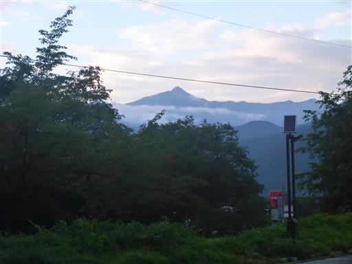 キャンプ場から目立つ山が見える。恐らく笠ヶ岳だ。