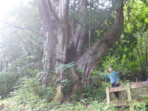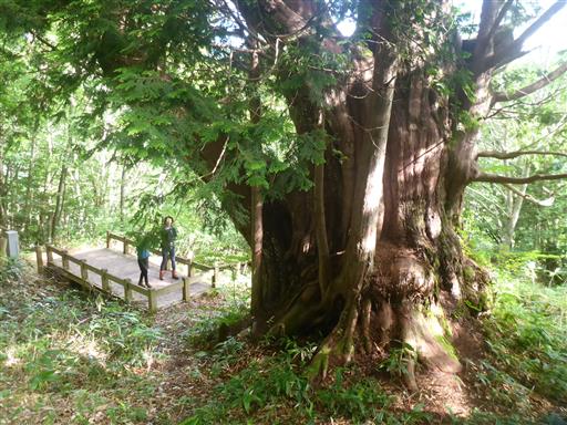 朝食後に、キャンプ場の近くにある平湯大ネズコを見に行く。