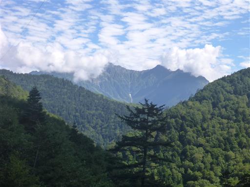 安房峠の展望台から穂高を眺める。奥穂高は残念ながら雲の中だ。