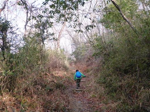 神社の側から登山道は始まる。緩やかな尾根道だ。