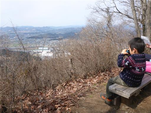 一角のみ展望が広がる。息子は双眼鏡を覗いている。