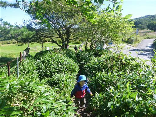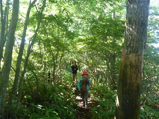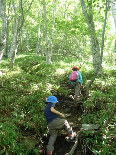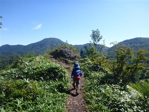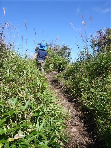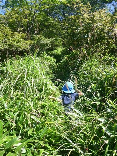 次は草に覆われた登山道。背の低い息子は大変そうだ。