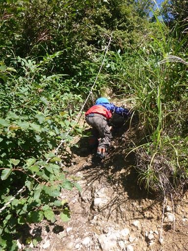 痩せ尾根を登る。下りの時よりは安心して見ていられる。
