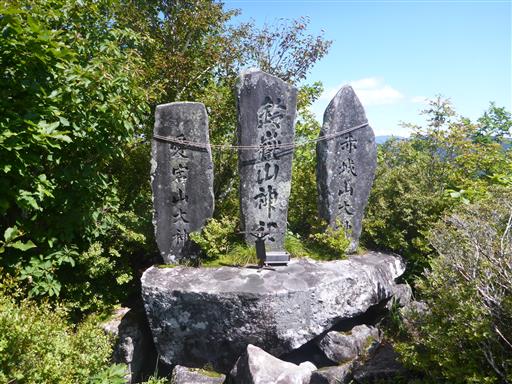 山頂に近づくと登山道の側にいくつかの石碑が見られる。