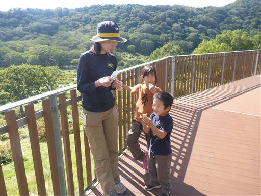 子供たちは昼食をとったら、とんぼや蝶を追いかけている。