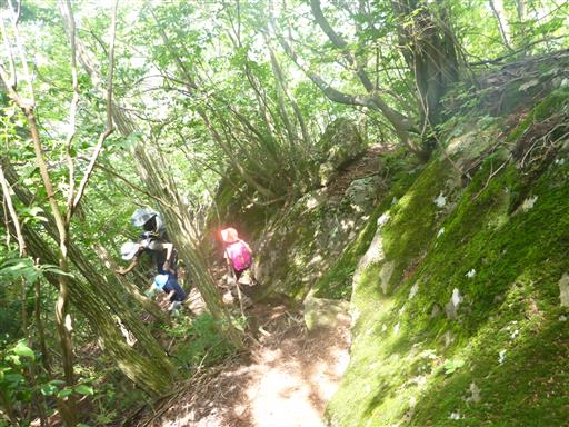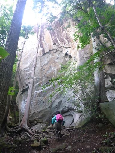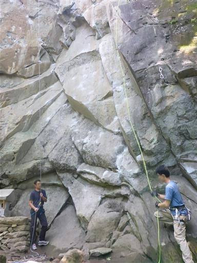 さらに下の大岩に到着。ロッククライミングを楽しんでいる人がいる。