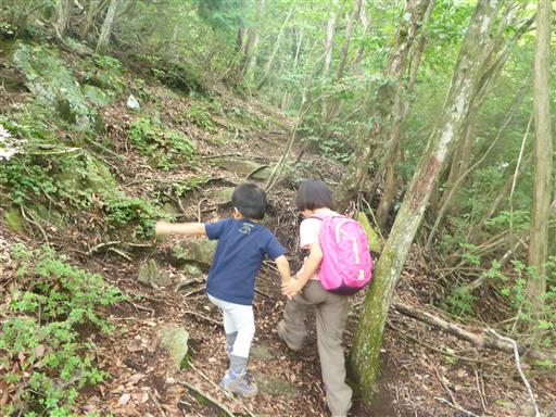 急斜面が続くため、息子と手を繋いで降るのは結構大変だ。