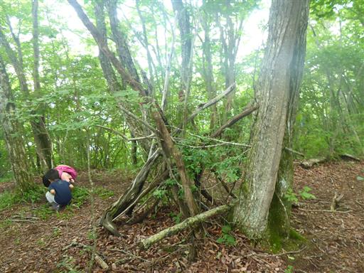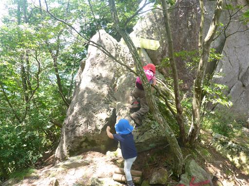 鋏岩に到着。下山時も子供たちは岩に登りたがる。
