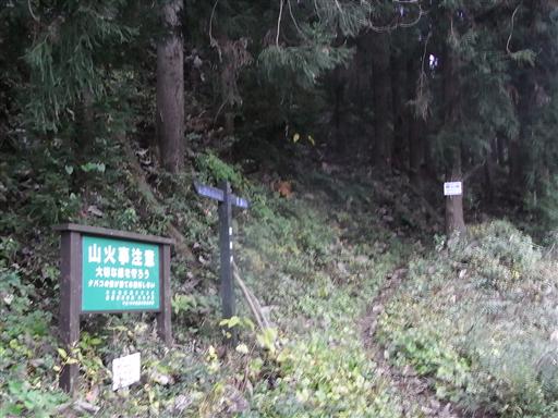 しばらく車道を歩くと登山道入口に到着する。