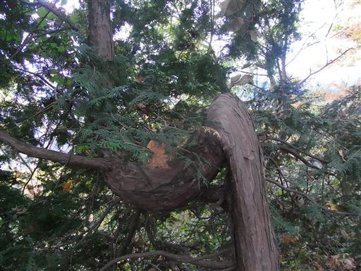 曲がりくねった檜。材木としては失格だ。