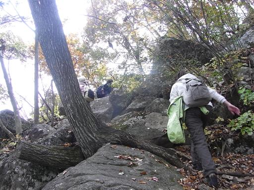 山頂直下は傾斜が急になり、大きな岩を乗り越えていく。