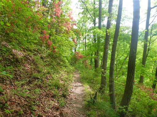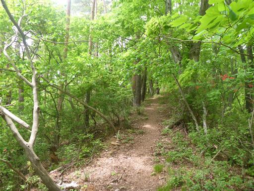 ヤマツツジと緑に包まれた登山道。