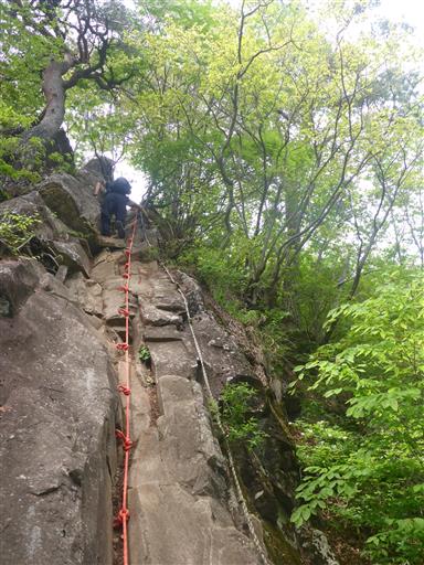 傾斜が緩いので、ロープを使わなくても比較的容易に登れる。