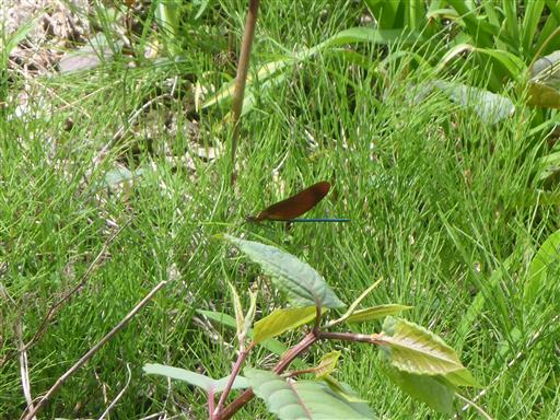 周囲をカワトンボがたくさん飛んでいる。