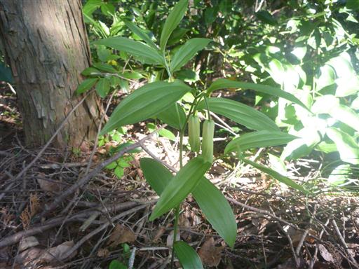 ホウチャクソウ。白い花がぶら下がっている。