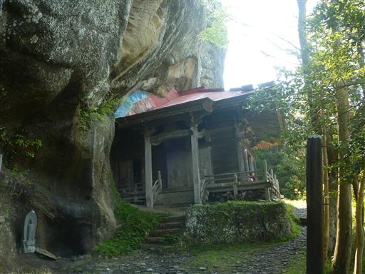 高宕観音。御堂が半分岩に埋まっている。