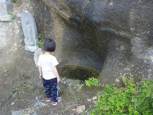 岩のうえからぽたぽたとしずくが落ちていて、小さな水たまりができている。