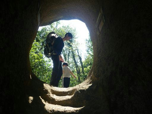 高宕観音の先は岩を掘って造られた階段とトンネル。
