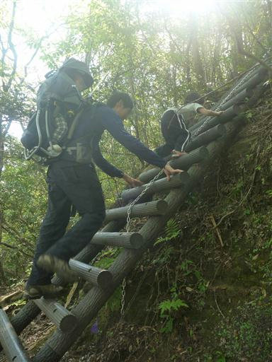 慎重に梯子を登る。